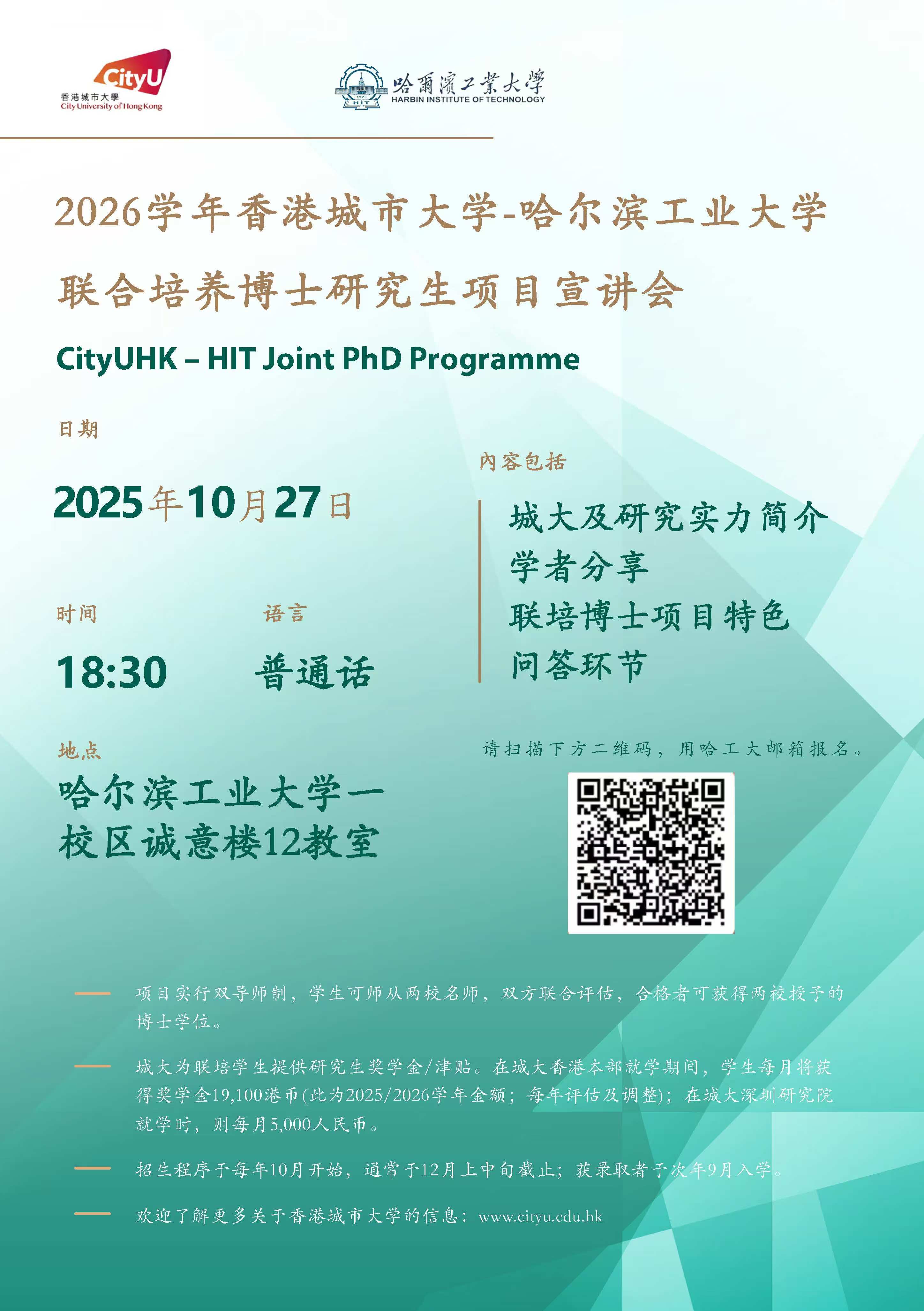 为进一步做好2026年该项目的校内选拔工作,受香港城市大学委托,研究生院组织举办本次讲座。现将相关事宜通知如下: