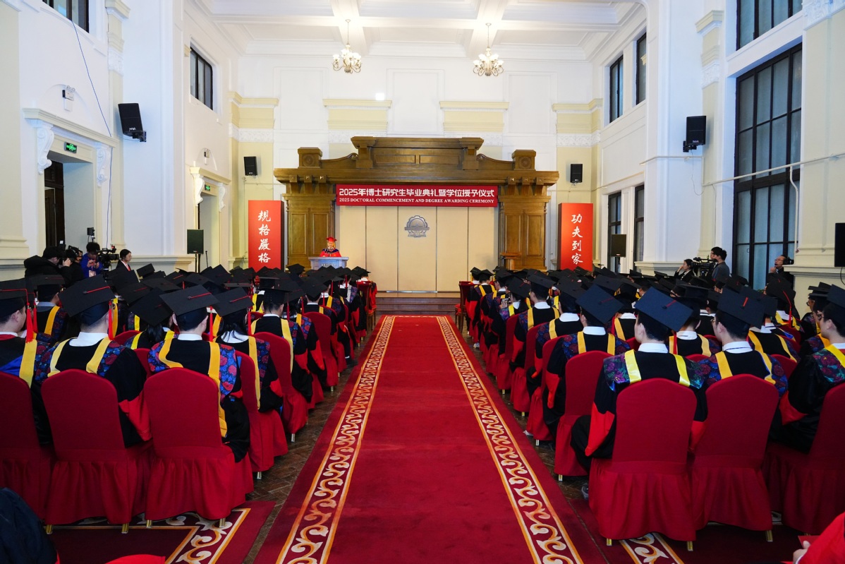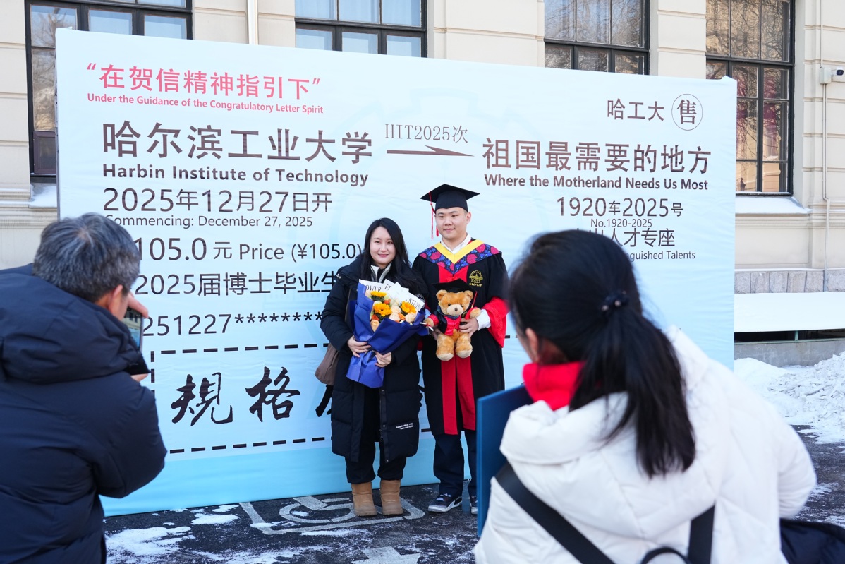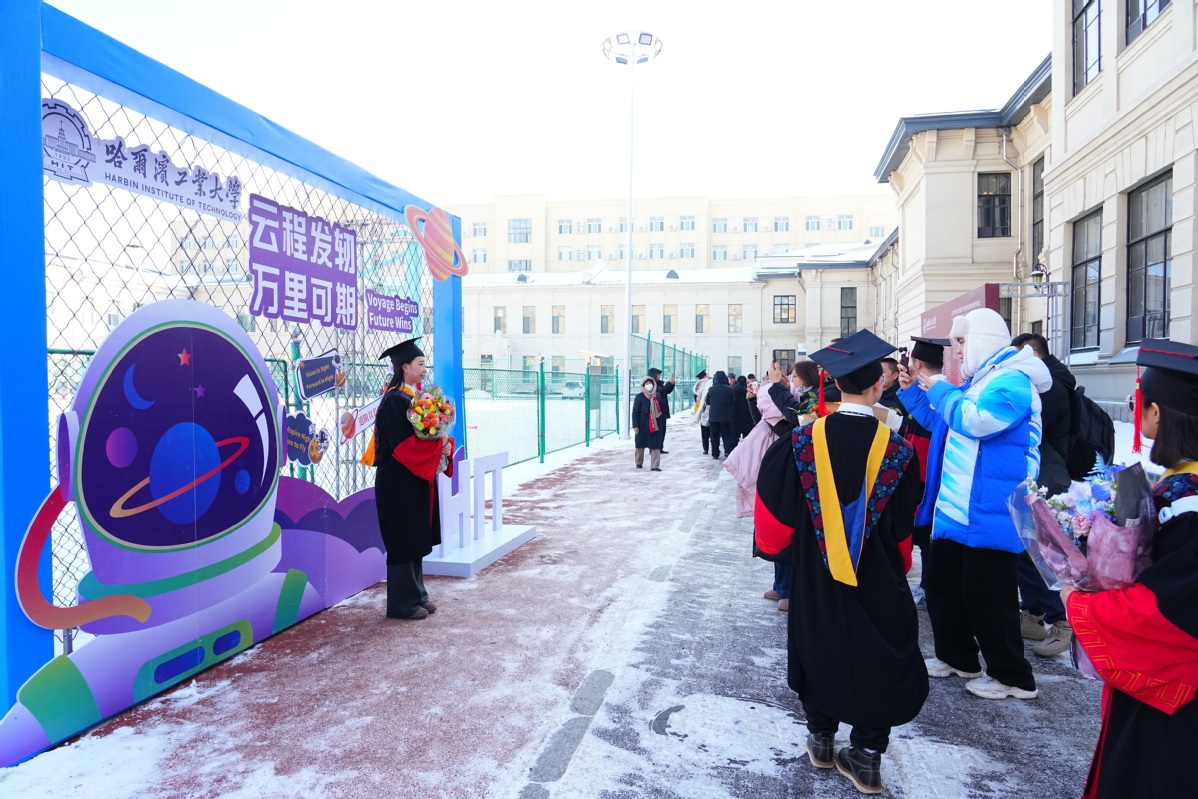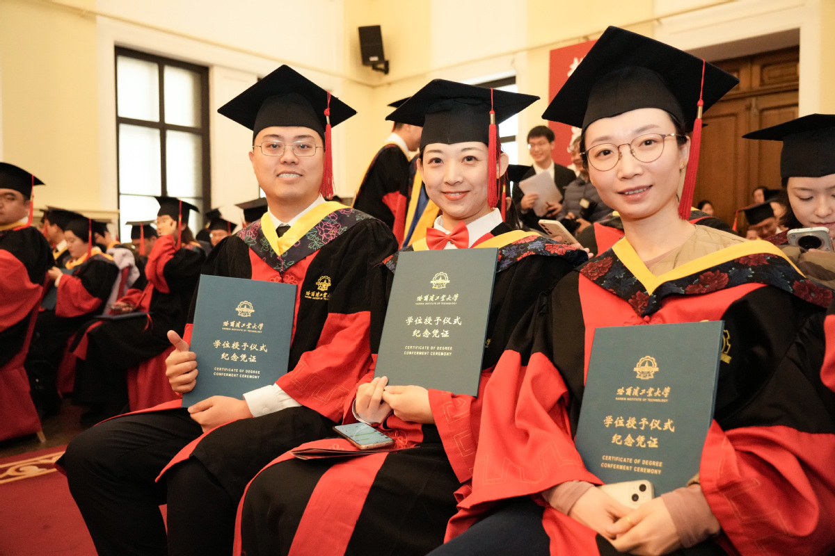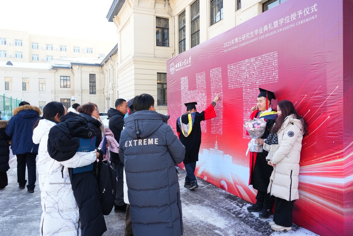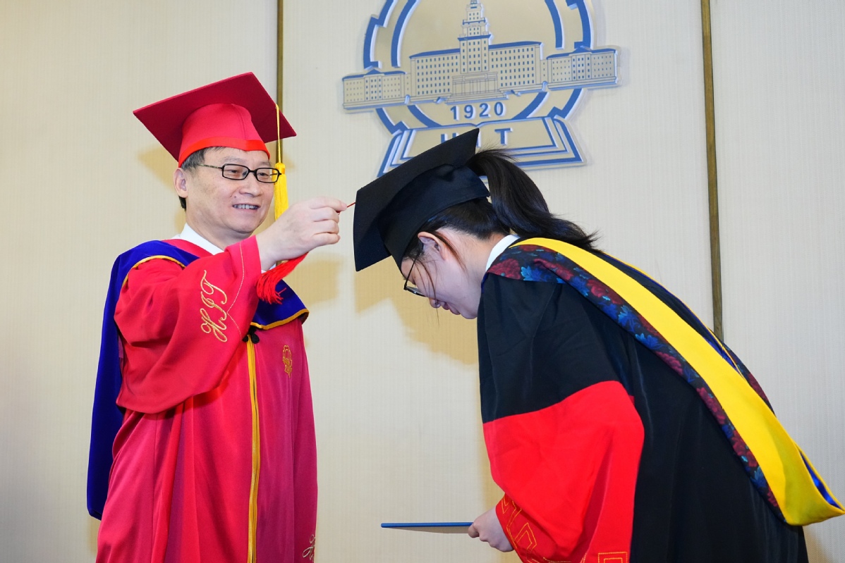银装素裹,瑞雪丰年。有着百年历史的哈工大博物馆礼堂再次迎来最高学位授予仪式,在师长、亲友的见证下,356名博士毕业生取得最高学位、启航人生新程。12月27日,2025年博士研究生毕业典礼暨学位授予仪式在校本部和深圳校区同步举行,校长韩杰才出席仪式为博士毕业生援正流苏并合影留念。近50万人次,通过官方全媒体平台观看直播,为博士毕业生送上祝福。